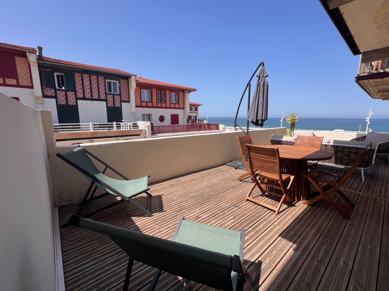 Grande terrasse de 30 M2 vue mer, plein sud avec mobilier.