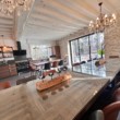Tout le rez de chaussée est destiné à l’espace de vie avec la bibliothèque / cheminée, ses fauteuils et canapés moelleux, son bar, grande salle à manger avec écran télé de 180 cm avec sa grande cuisine ouverte conçue avec 2 réfrigérateurs, 2 laves vaisselles, un grand piano à gaz et son maxi four.